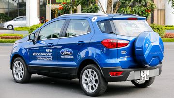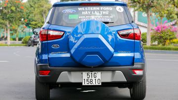 Ở phần đuôi xe, Ecosport vẫn giữ lại thiết kế quen thuộc với cụm đèn hậu đa giác hai tầng, tuy nhiên chỉ là bóng Halogen căn bản. Lốp ngừa được đặt ngay trên đuôi xe đã trở nên đặc trưng dễ nhận biết của những chiếc SUV từ Ford, thể hiện phong cách xe địa hình đầy mạnh mẽ. Phần ốp của nó cũng được chăm nom hơn với thiết kế dập nổi hầm hố.