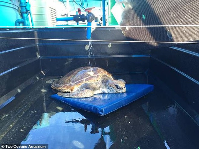 Cụ thể, chú rùa nặng 23kg được tìm thấy trên bờ biển Struisbaai (Cape Town, Nam Phi), trong tình trạng khó thở cực độ. Các chuyên gia sau đó đã đưa chú đến Viện hải dương Two Oceans để thực hiện khám nghiệm.