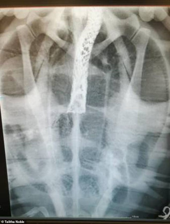 thầy thuốc Malan van Zyl của viện sau đó đã thực hành chụp X-quang, và lôi ra được 2 dị vật trong khí quản của con rùa.